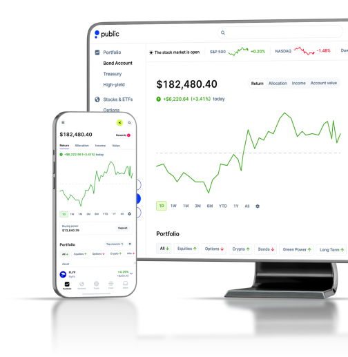 On Public, you can build a multi-asset portfolio of stocks, options, crypto, bonds, and more, with AI-powered investing tools.