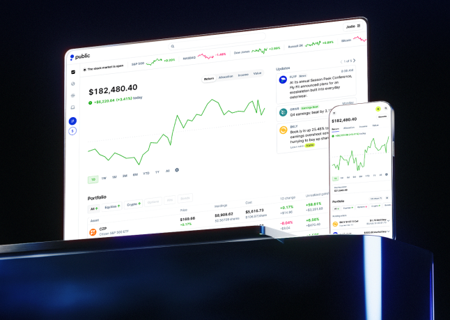 Self-directed individual retirement accounts are offered by Public Investing, a registered broker-dealer and member of FINRA & SIPC. Information about retirement accounts on Public is for educational purposes only and is not tax or investment advice. Consult your tax advisor for individual considerations. Visit the IRS website for more information on the limitations and tax benefits of Traditional and Roth IRAs. All investing involves risk.