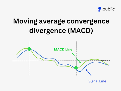 MACD line & signal line: A crossover between the two lines may indicate a buy or sell signal.