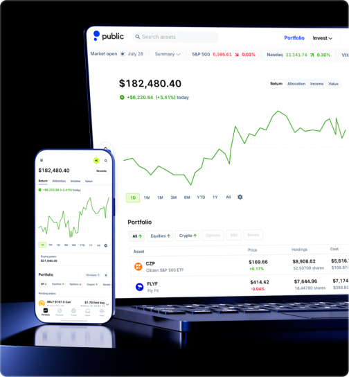 Self-directed individual retirement accounts are offered by Public Investing, a registered broker-dealer and member of FINRA & SIPC. Information about retirement accounts on Public is for educational purposes only and is not tax or investment advice. Consult your tax advisor for individual considerations. Visit the IRS website for more information on the limitations and tax benefits of Traditional and Roth IRAs. All investing involves risk.