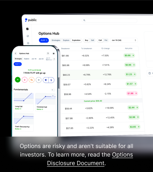 Quotes and other market data for Public’s product offerings are obtained from third party sources believed to be reliable, but Public makes no representation or warranty regarding the quality, accuracy, timeliness, and/or completeness of this information. Such information is time sensitive and subject to change based on market conditions and other factors. You assume full responsibility for any trading decisions you make based upon the market data provided, and Public is not liable for any loss caused directly or indirectly by your use of such information. Market data is provided solely for informational and/or educational purposes only. It is not intended as a recommendation and does not represent a solicitation or an offer to buy or sell any particular security.