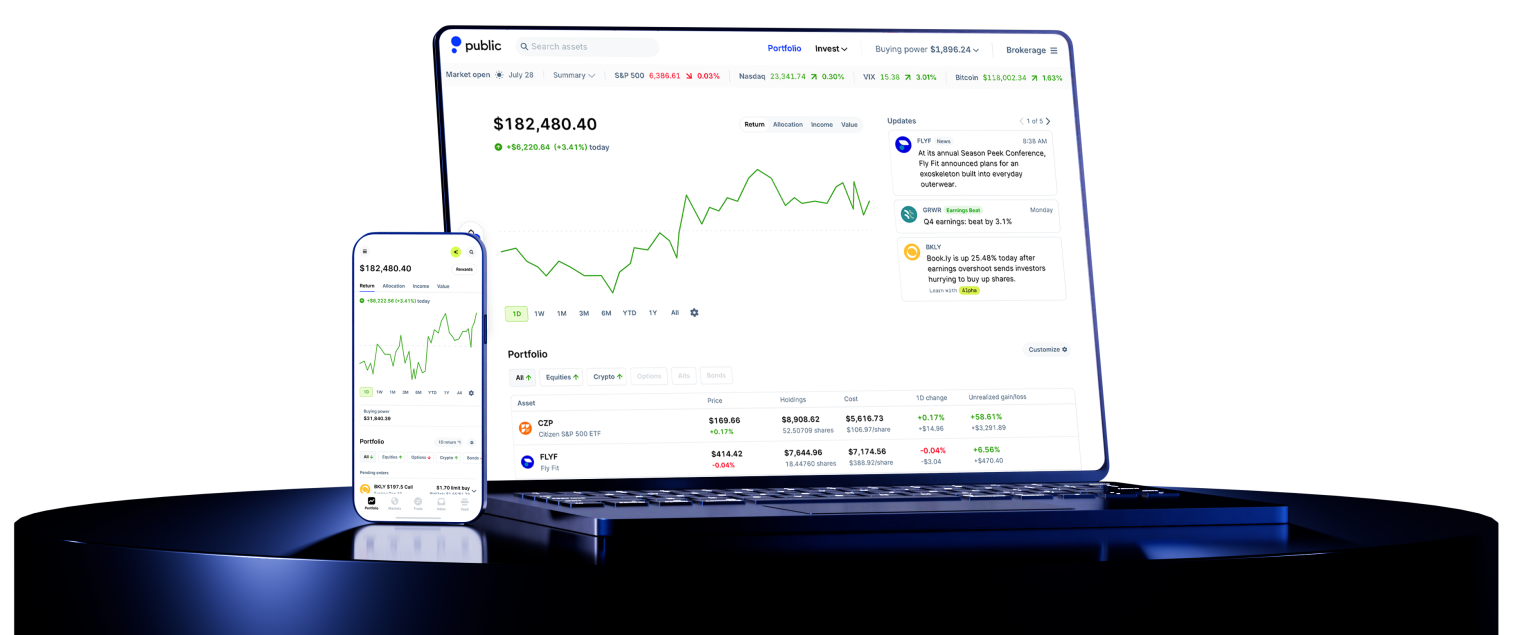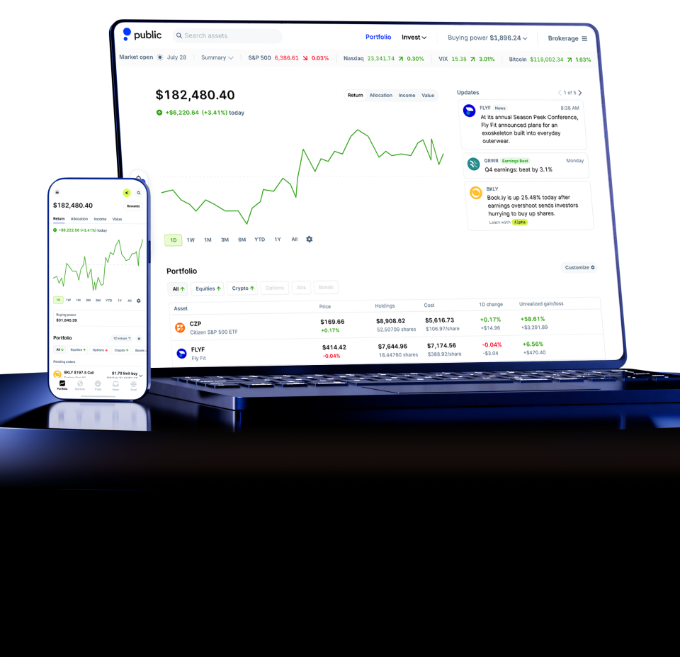 Self-directed individual retirement accounts are offered by Public Investing, a registered broker-dealer and member of FINRA & SIPC. Information about retirement accounts on Public is for educational purposes only and is not tax or investment advice. Consult your tax advisor for individual considerations. Visit the IRS website for more information on the limitations and tax benefits of Traditional and Roth IRAs. All investing involves risk.