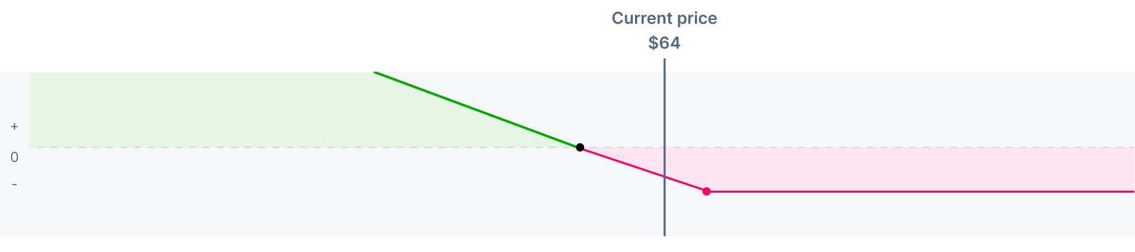 In the scenario above, you’d make $6,400 selling 100 shares in the market. However, you have a put option with a strike price of $65, so you can sell 100 shares for $65 each, or $6,500 total. You stand to make a profit of $100. But remember that you initially paid $300 for the call option, so we need to subtract that premium, making your net loss $200.
