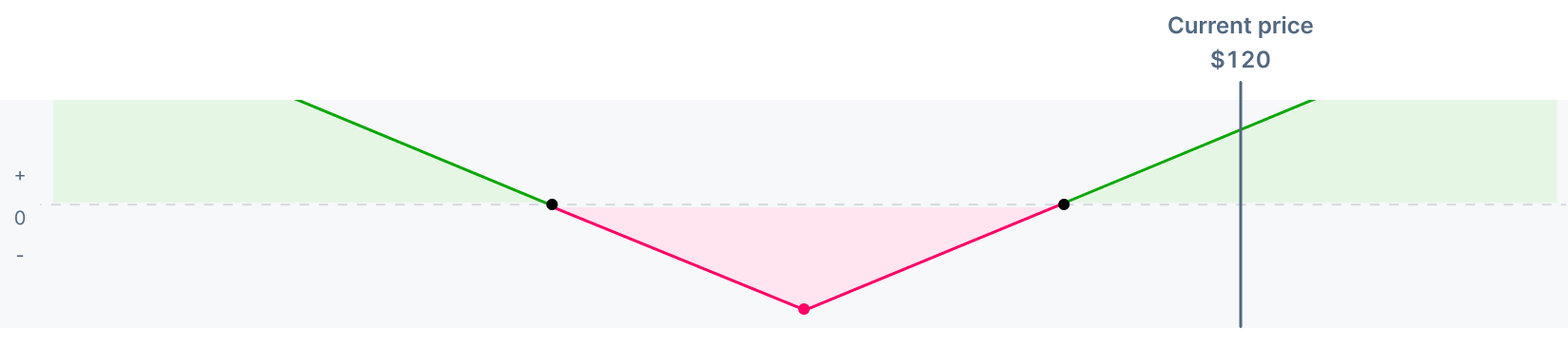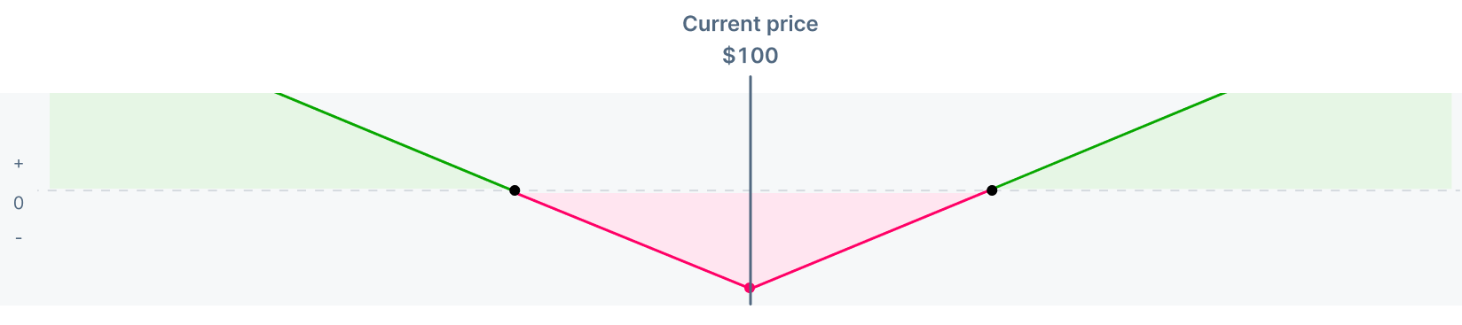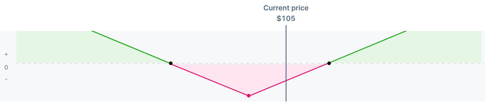 - Profit: You’ll profit if the stock price rises above (strike price + premiums paid) or falls below (strike price - premiums paid) the breakeven prices