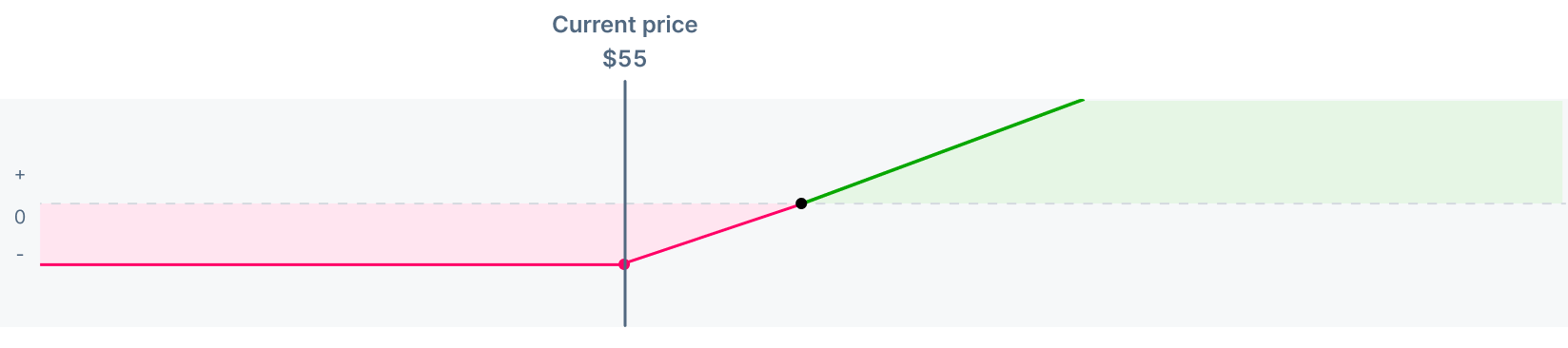 Assume you buy a call option with a $55 strike price, expiring in six months, for a premium of $2.50.
